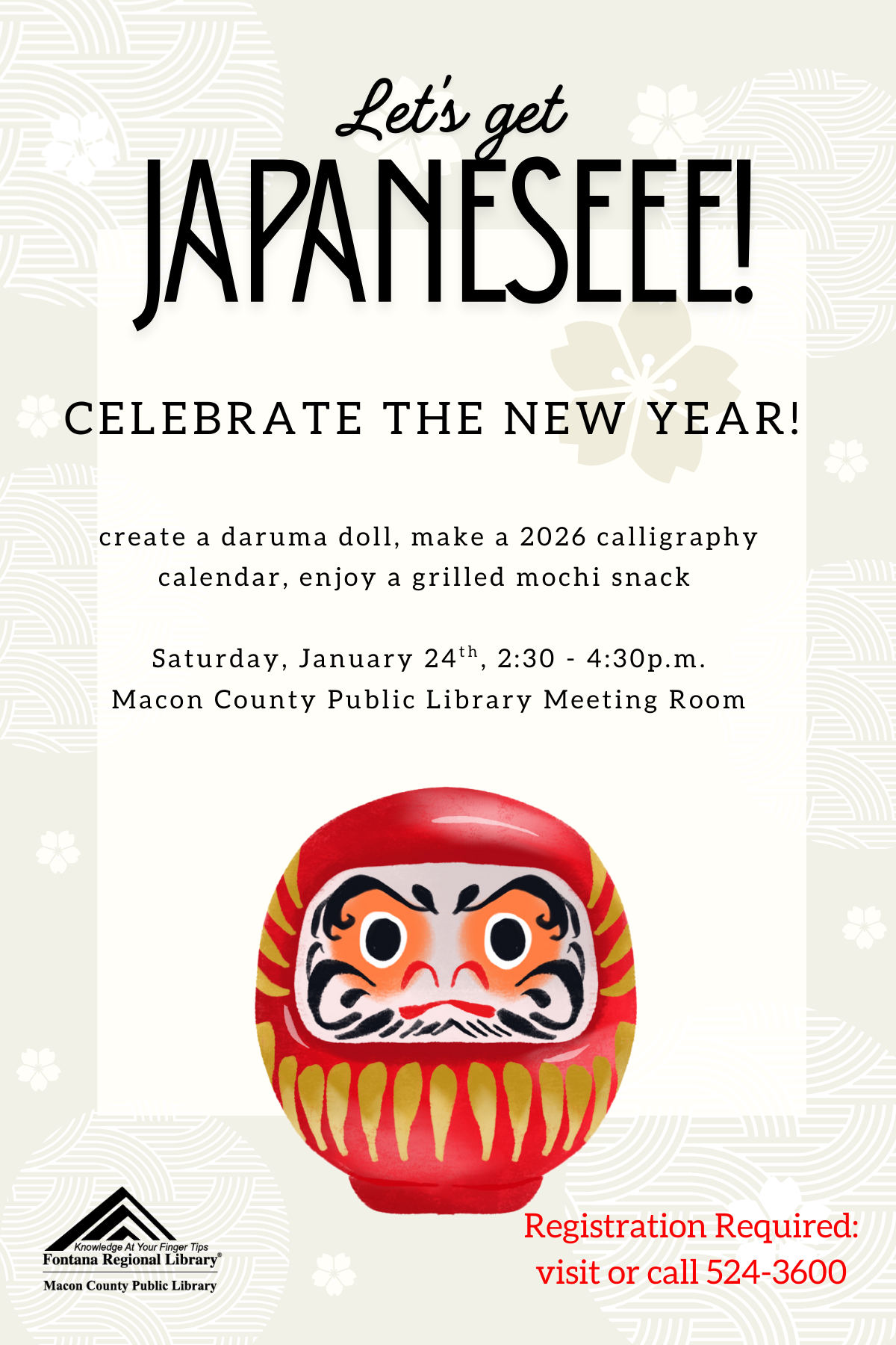 An exploration of the traditions of Japanese New Year's and the customs observed. After a short presentation, Etsuko Modlin and Yumiko Ono will help participants craft their own 'Daruma Dolls' - traditional dolls used in making New Year's resolutions. Participants will also learn about Japanese Calligraphy while making their own 2026 calendars. Lastly, everyone will enjoy Isobeyaki - grilled mochi - a sticky rice cake that is eaten by Japanese families at New Year's.