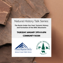 The Jackson County Public Library and Balsam Mountain Trust will host a series of nature talks beginning on Thursday, January 29th at 6pm. The first talk in the series will be The Rocks Under Our Feet: Tectonic History and Formation of the WNC... more
