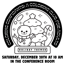 Join us for our holiday themed meeting of Coloring Confidants, a coloring club for adults on Saturday, December 20th at 10 AM in the Conference Room. Supplies will be provided but feel free to bring your own coloring sheets, pencils, markers,... more