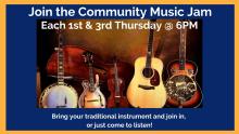 The Marianna Black library has hosted a Community Music Jam in Bryson City for nearly two decades! They are typically held on the library front patio, if weather permits, or in the library auditorium. Anyone with a guitar, banjo, mandolin, fiddle,... more